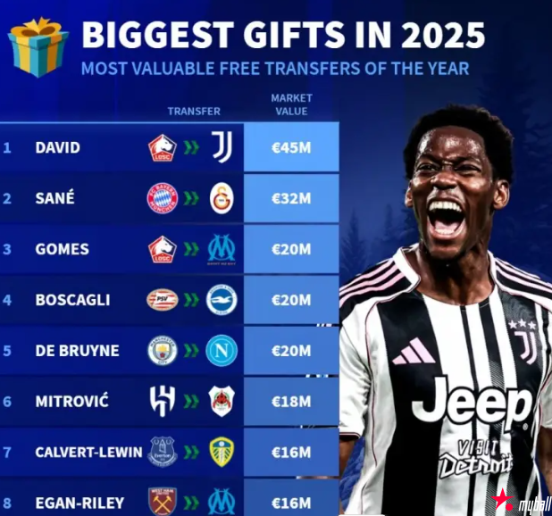 迈博体育 2025自由转会球员身价:乔纳森-戴维居首 2025-12-26 13:07:41